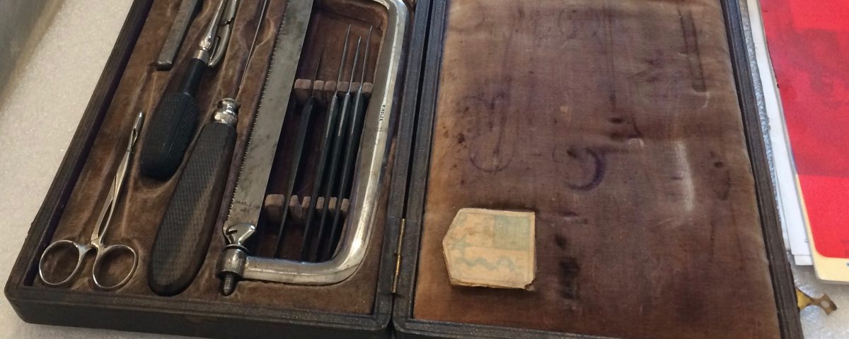 Lord’s surgical kit eventually was recovered from the Indians and sent to the Army’s medical museum. After the First World War, the kit was decommissioned by the museum and remained in private collection until 2017 when it became available for purchase. Museum Director George Wunderlich discovered the kit was available for purchase and asked the Foundation to make the purchase. The kit now safely resides at the AMEDD Museum while the staff considers how best to display this remarkable object.
