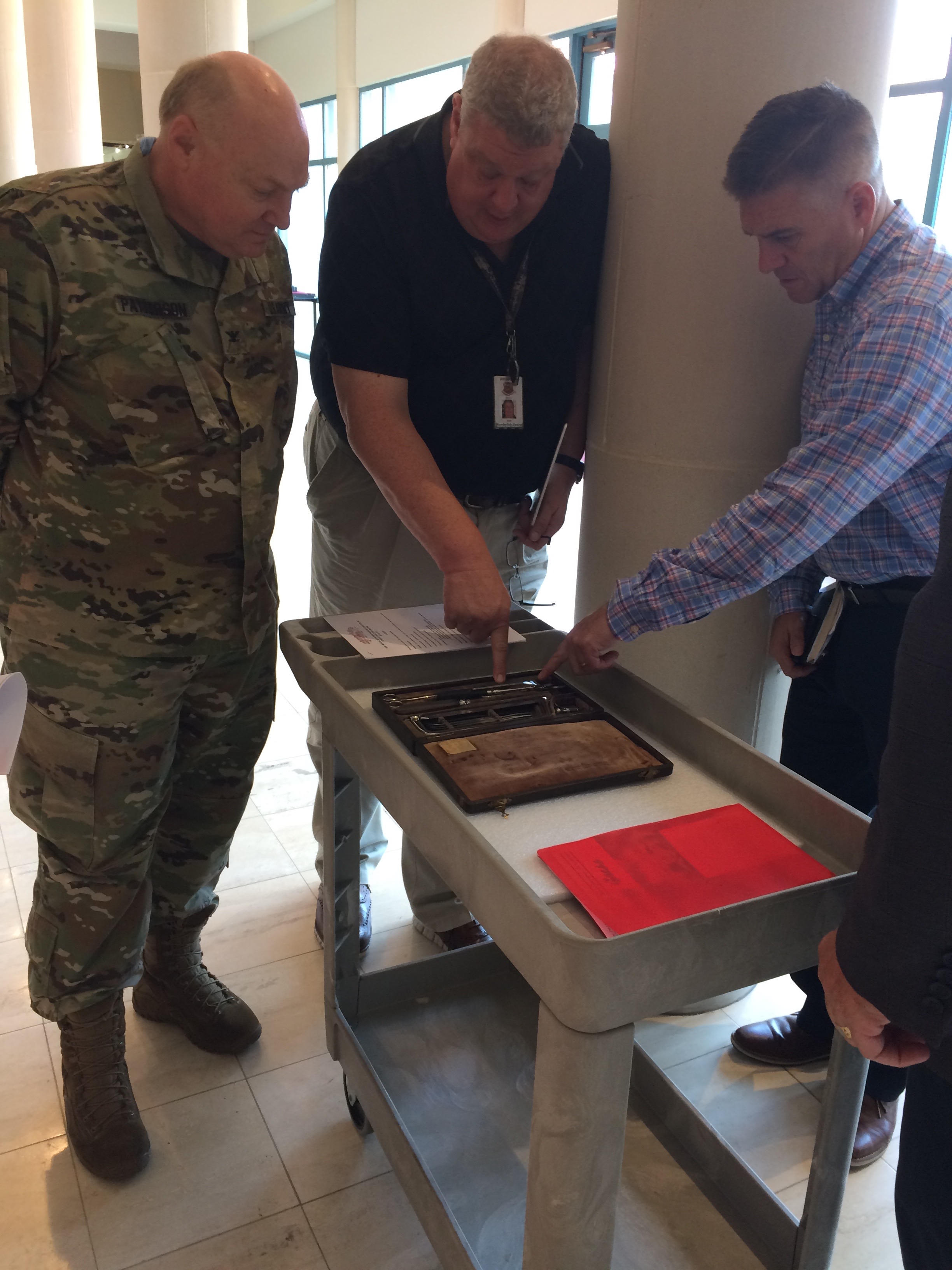As a special treat, Board Members attending the meeting were shown the recently acquired Surgeon’s kit from the battle of the Little Big Horn. Army Surgeon Lord was killed at the Battle but his Army Issued Surgeon’s Kit was recovered the next day from a local Indian village. The next quarterly Board Meeting will be Friday, 27 October at the Museum. All are welcome to attend.