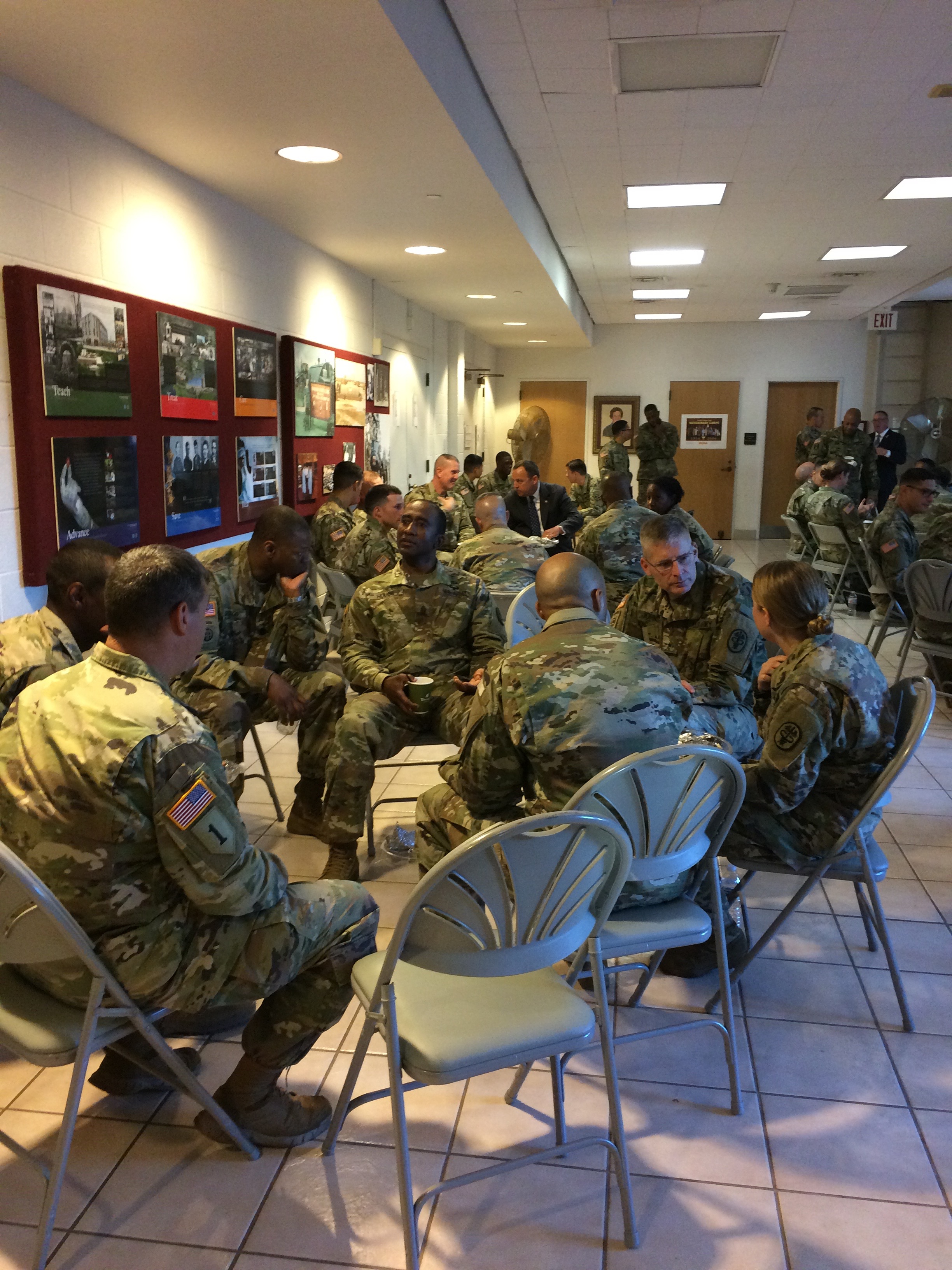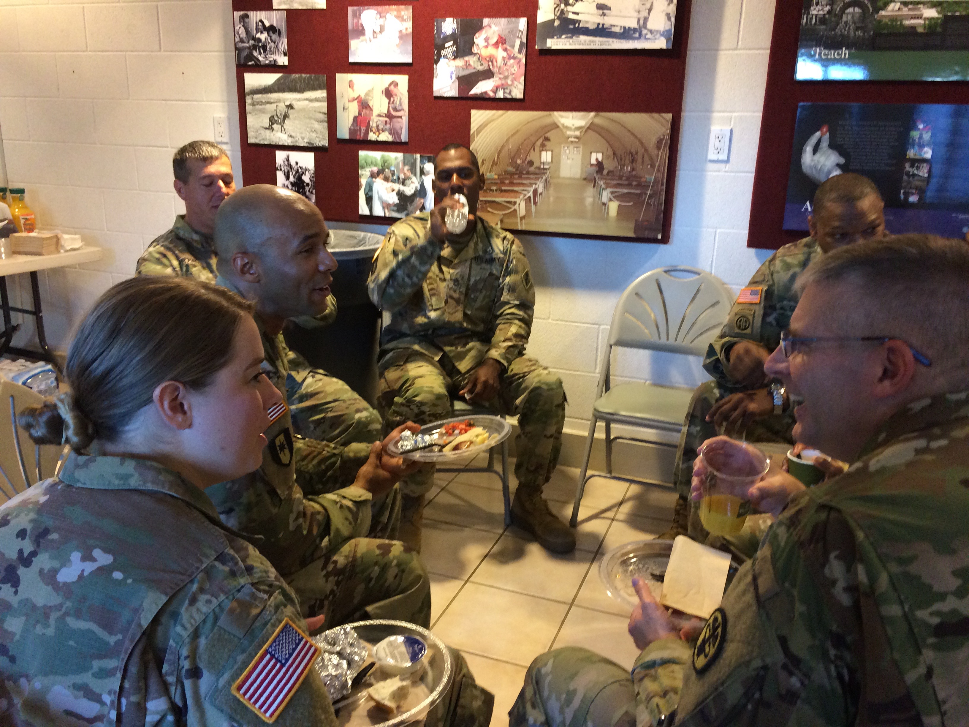 The Museum Foundation recently supported the MEDCOM’s 2017 Best Warrior competition with a competitor breakfast and awards at the final ceremony. Previously known as the MEDCOM NCO and Soldier of the Year contest, the Best Warrior competition tests NCOs and Soldiers on primarily warrior skills in a tough week-long competition at Camp Bullis. Twelve candidates, all carrying medical MOSs, from around the globe competed in the grueling Texas heat at Bullis. At the breakfast on Thursday, 27 July, candidates and their command teams enjoyed a hearty taco breakfast sponsored by First Command at the Museum. Enjoying the hot chow and the AC, candidates relaxed and bantered prior to the afternoon awards ceremony. They were also treated to a visit by the award ceremony speaker, Matt Eversmann, an Army Infantryman whose story was portrayed in the movie Blackhawk Down. At the afternoon ceremony, the winners of the 2017 Best Warrior Competition were awarded replica 19th century Hospital Steward knives from the Museum Foundation by Foundation President, COL (R) Herb Coley.