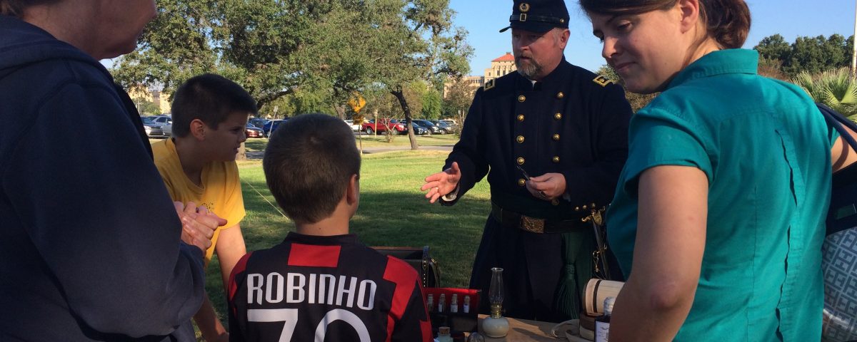 As part of the 2016 Best Medic Competition’s culminating events on Friday, 28 October, local volunteers brought medical history to life on the Museum grounds. Best Medic attendees and Museum visitors were delighted to interact with Civil War corpsmen and surgeons, a WWI nurse, and a WWII medic. A Civil War era hospital with tents, cots, equipment and even three Army mules were present and ready for action. Visitors also enjoyed looking over a WWI era ambulance from the Museum’s collection. The Museum has an active volunteer cadre who enjoy recreating medical history and the men and women who made that history. Their efforts not only teach but inspire!